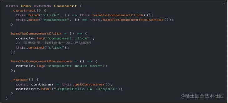 - unbind(eventName, handler?): 解绑事件, 若不传 handler 则默认全部解绑。