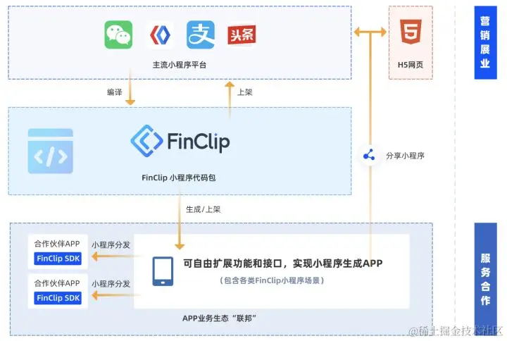 可以关注 FinClip 所支持的小程序“一键转换”App能力,能够帮助企业将已经搭建好、且投入了巨大人力的小程序,直接生成为独立App。且在这个新的App内,可以直接运行现有的小程序,并且可直接实现微信关联登录等基本能力,能够打通原有在微信小程序上的的账户体系。