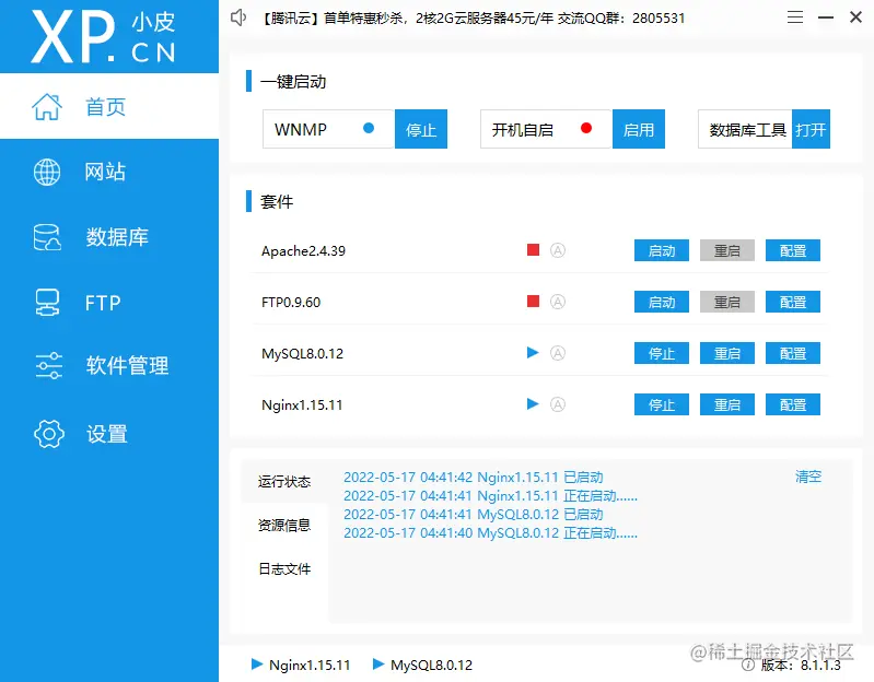 首先我们在本地电脑上安装PHPStudy,并在软件主页面点击“软件管理”项,安装apache2、nginx、mysql、php、sql软件,这些软件是我们网页正常运行的基础。