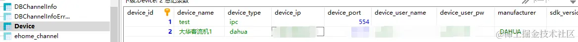 5、已经通过ip查找到大华SDK接入的设备。而DBChannelInfo表有一个“parent_device_id”字段。所以查找DBChannelInfo表加入一个“parent_device_id”字段,用于对应大华sdk接入的设备;