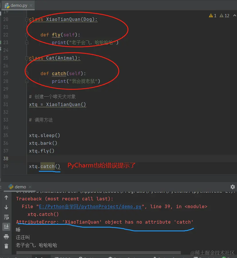 提问:哮天犬能够调用Cat类中定义的catch方法吗?