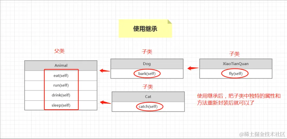 使用继承后只需要把子类中特有的属性和方法再次封装一下就可以了,而不需要其他子类中把父类的方法重复编写一遍。