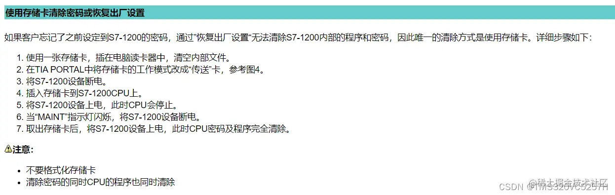 这篇文章介绍的是西门子存储卡的使用方法,其中就包含了使用存储卡清除PLC密码的方法。步骤有7步。