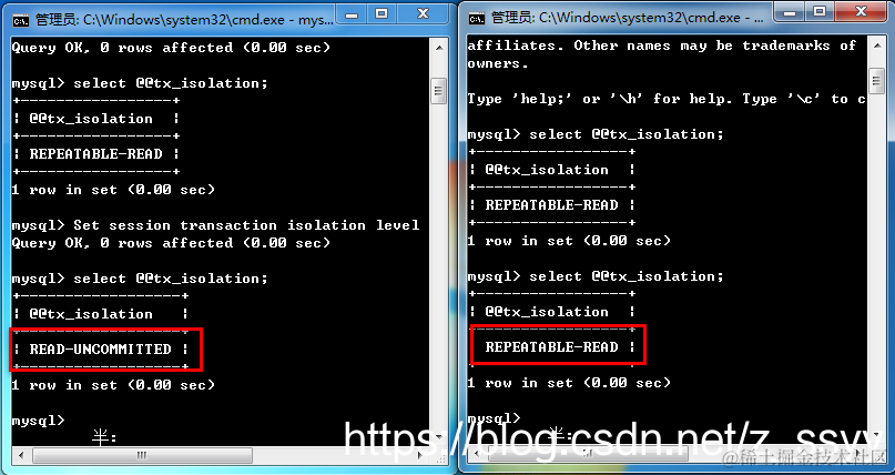 需要注意的是,当执行完成一个操作,无论你是rollback还是commit,事务的隔离级别都会再回到默认级别,即:
