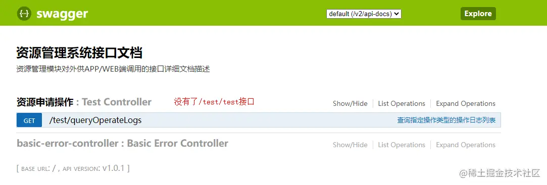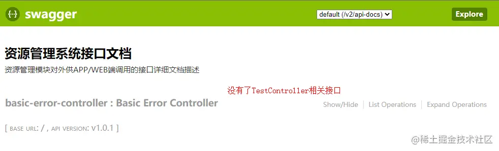 改动后重启进程,再打开swagger界面,发现TestController整个类的接口都没有显示。