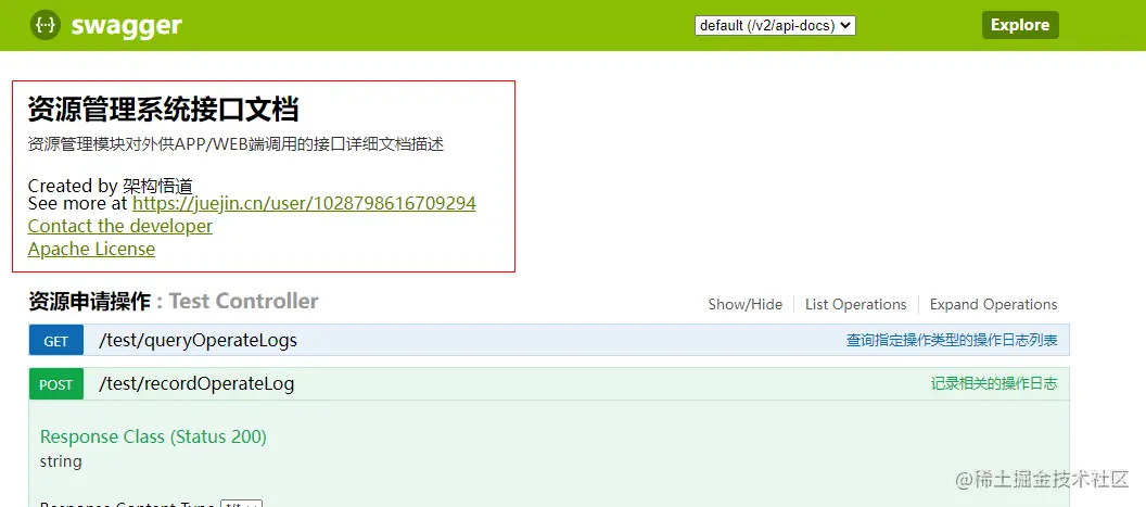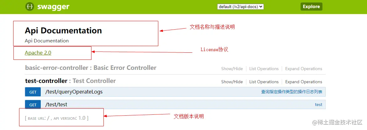 为了体现出接口文档的专业性,让人更容易知晓此接口文档所属系统、对应版本、维护团队等信息,我们可以在代码中根据需要自定义相关的内容。