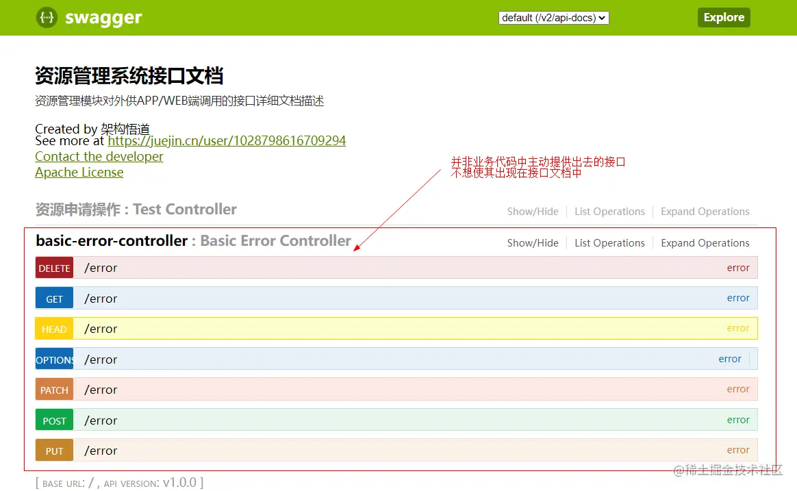 这样就可以保证出现在接口文档里面的都是我们自己定义的接口了。重新启动并刷新界面,会发现,只有指定package目录下的Controller接口显示在swagger界面上了。