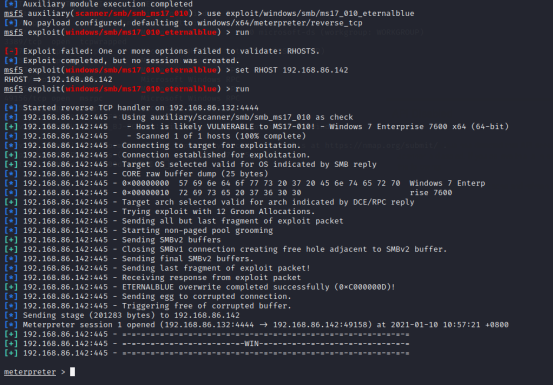 6.使用msf对永恒之蓝漏洞进行利用和攻击