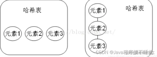 哈希值相同 equals 为 false 的元素是怎么存储呢,就是在同样的哈希值下顺延(可以认为哈希值相同的元素放在一个哈希桶中)。也就是哈希一样的存一列。
