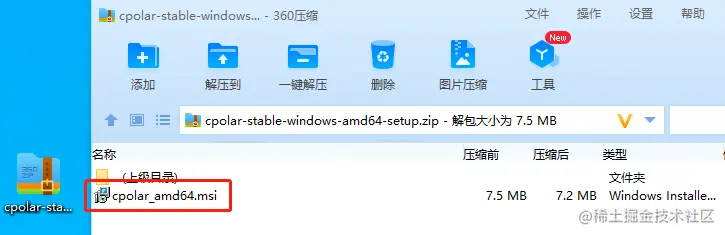 首先,我们需要在家里安装一个cpolar客户端(可以在cpolar官网页面免费下载),在cpolar客户端下载完成后,双击压缩包内的.msi文件,自动进行安装。