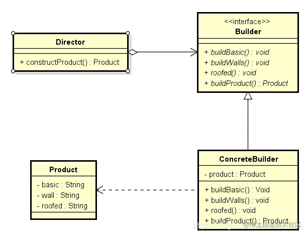 (1)产品必须有共同点,限制了使用范围。建造者模式创造出来的产品,其组成部分基本相同。