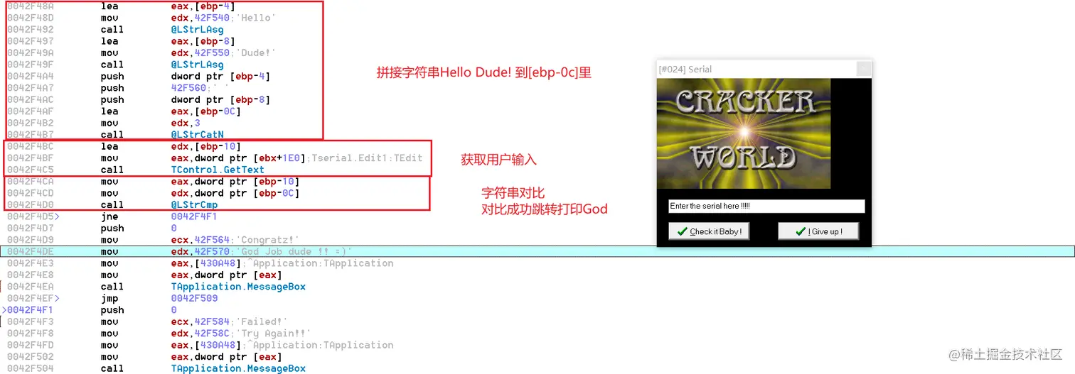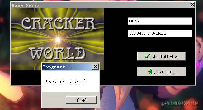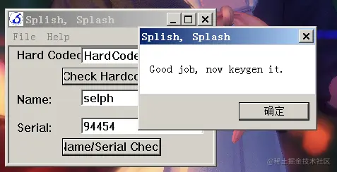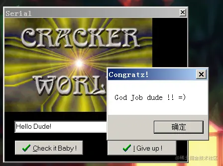 序列号验证:硬编码验证,输入Hello Dude!即可