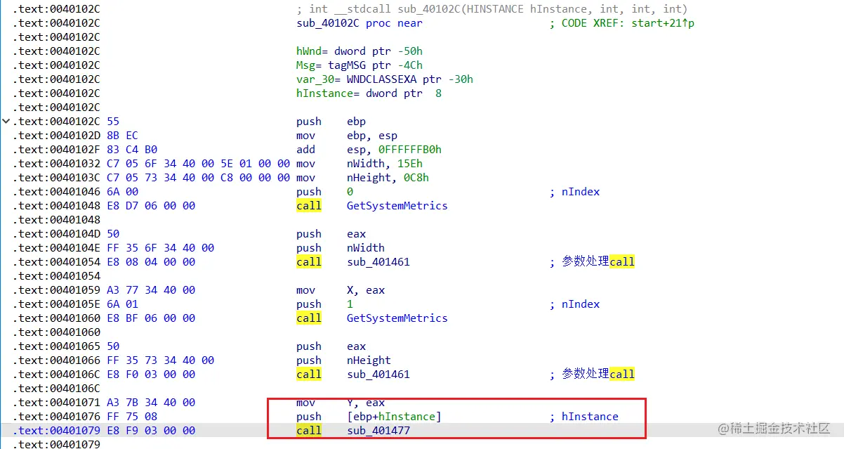 这个call里面就进入窗口消息循环了,在那之前调用了几个用户函数: