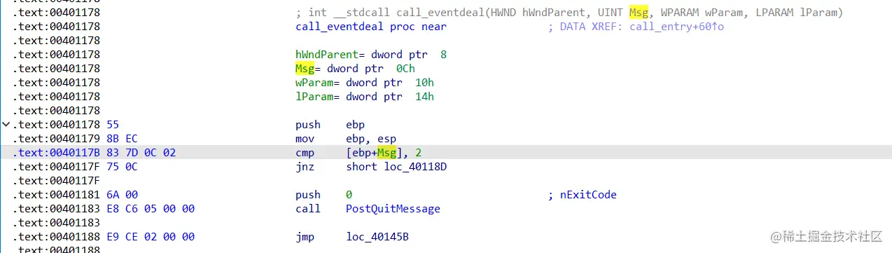 然后找到一个函数貌似是消息处理函数:这里根据参数的Msg号进行跳转执行