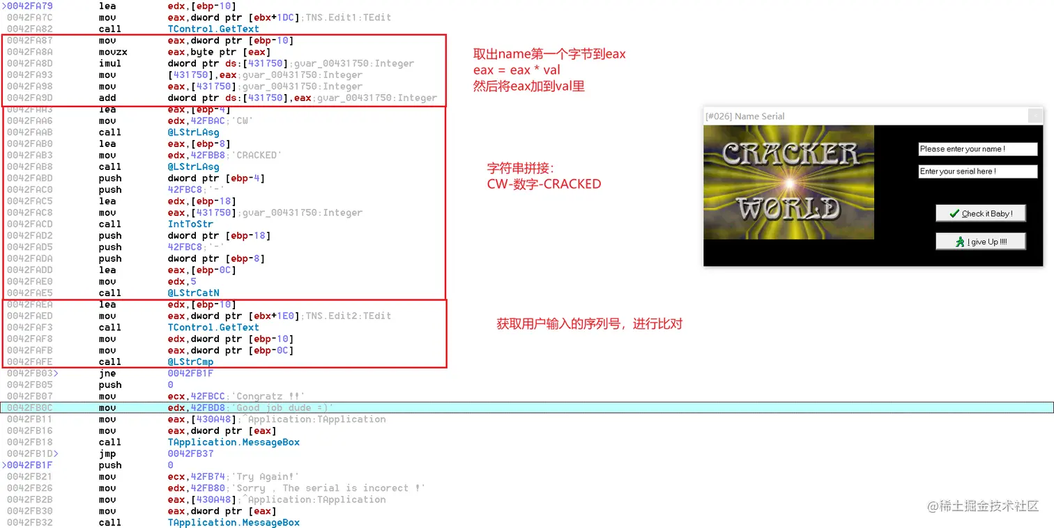 算是个编写注册机的练习,这个cm中练习了汇编转C的操作
