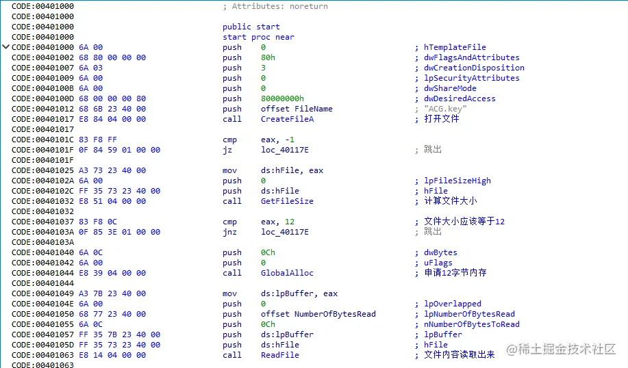 抄起IDA直接干,用户函数就3个,这么简洁这应该是纯汇编写的程序吧(猜的),从start开始分析