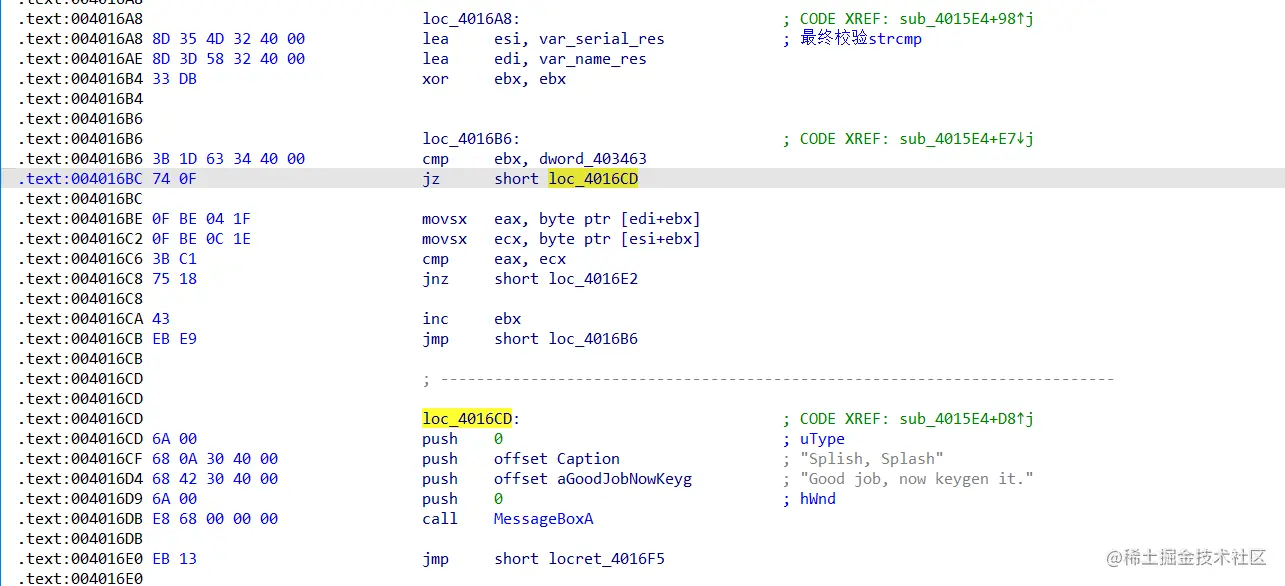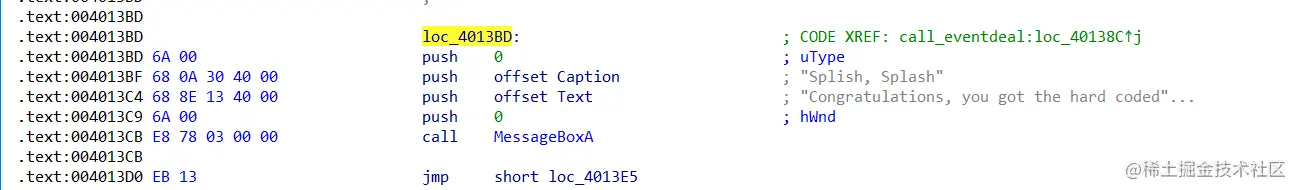 一致了跳转的最终位置是,说明这里硬编码已经找到了: