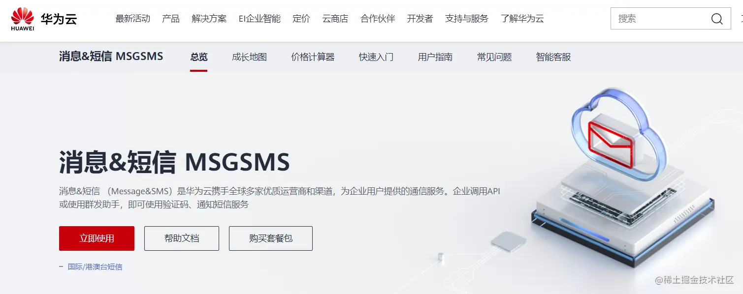 华为云就不用我多说了吧,大家都了解。只不过很多人都不知道他也在做短信,华为的短信验证码服务也是不错的。