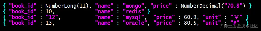 对于 MongoDB 来说为什么要做数据类型及合法性校验?曾经在线上库我们看到如下图片的类似数据,看看 boo_id 存储的数据,各种类型数据都可以写入且没有任何问题。