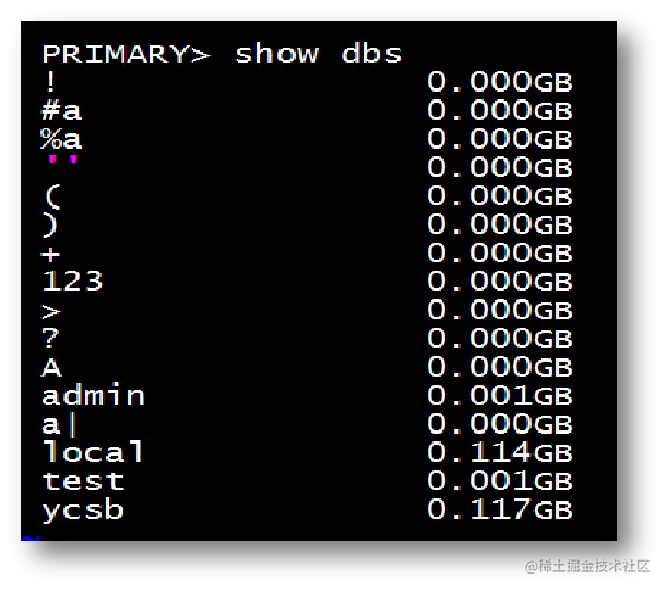 show dbsadmin 0.000GBtest 43.398GB //(storageSize+ indexSize) = du -sh testlocal 9.794GBdb.stats(){"db" : "test","collections" : 5,"views" : 0,"objects" : 276054256, //所有集合的文档数 dataSize/avgObjSize"avgObjSize" : 190.81693790296063, //dataSize/objects (bytes)" dataSize" : 52675827825, //未压缩的数据大小不含索引(bytes)"storageSize" : 12666482688, //存储引擎分配存储数据大小(bytes)"numExtents" : 0,"indexes" : 10,"indexSize" : 33932251136, //所有集合索引(压缩)大小储(bytes)"ok" : 1}三、集合数据类型及合法性校验