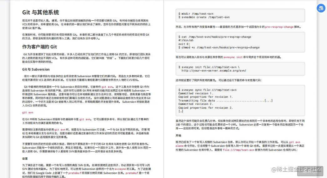对比 Git 和其它 VCSs,包括在 Subversion(SVN)的世界使用 Git 以及从其它 VCSs 迁移到 Git。 很多组 织仍在使用 SVN,并且也没有计划改变,此时,你将了解到 Git 不可思议的能力——本章将展示, 在你不得不使用 SVN 服务器的时候如何协同合作。我们还将介绍如何从不同系统导入项目, 以便你能够全身心投入 Git 的怀 抱。
