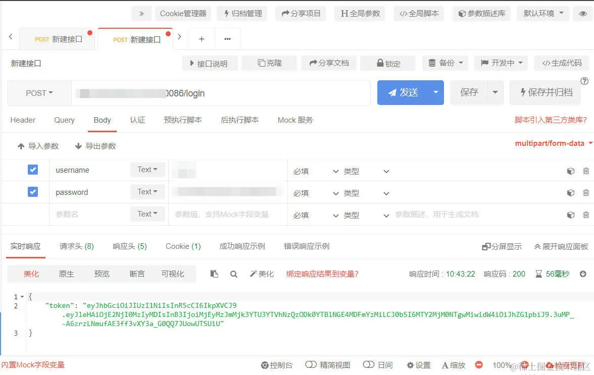 1)首先,调用登录接口,如图所示: