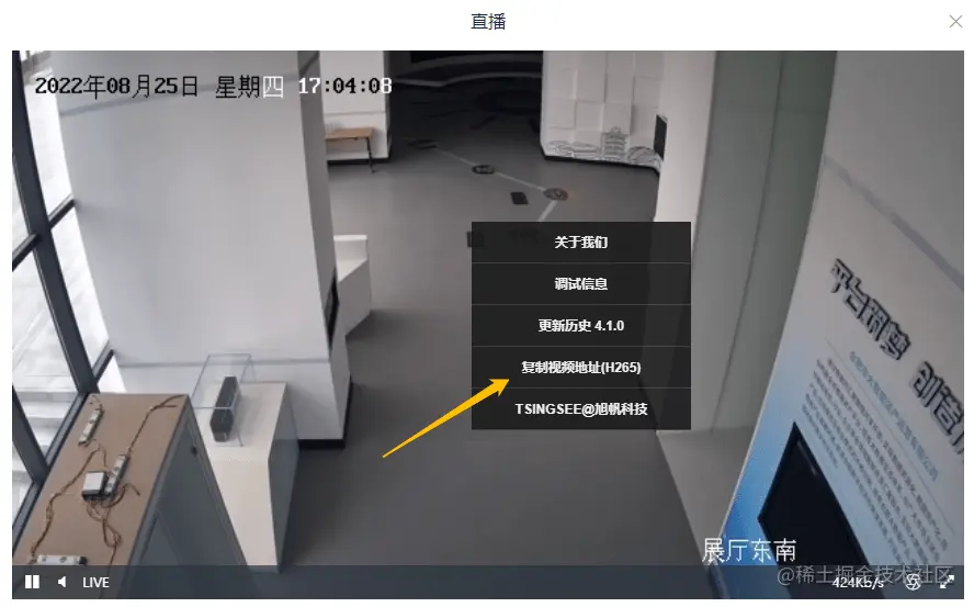 随着平台功能的不断拓展和完善,用户的使用体验也越来越好。自从平台内的EasyPlayer流媒体播放器大幅更新后,EasyCVR、EasyNVR、EasyGBS均可以直接在平台里查看到视频流的编码格式。用户在播放窗口右键单击,可出现弹窗,如图: