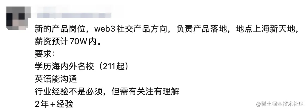 从我的朋友圈中一些招聘上就可以看出来,尽管 2022 年的全球资本进入了寒冬期,但 Web3 的市场还处于蓝海期。