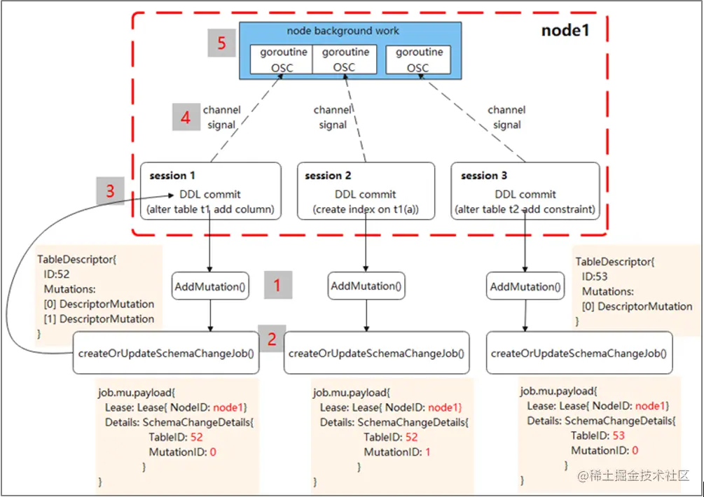 4、通过 Channel 通知后台 Work 处理 Job;05后台 Work 遍历 System.jobs,找到 Lease 属于本节点且状态为 Running 的 Job,并为每个 Job 起一个 Goroutine 进行处理。
