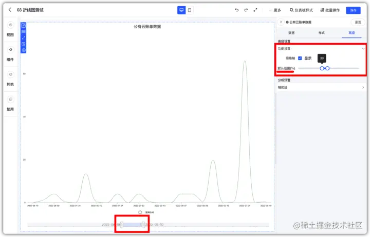 1.使用缩略轴辅助 X 轴数据点过于密集的情况。