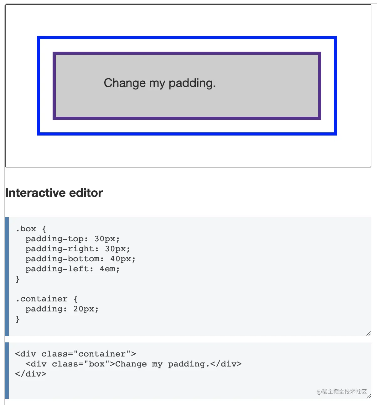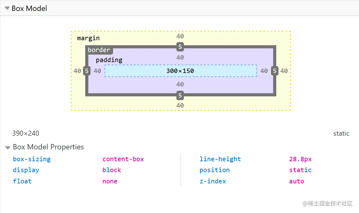 When a user agent (such as your browser) lays out a document, it generates a box for every element. Each box is divided into four areas: