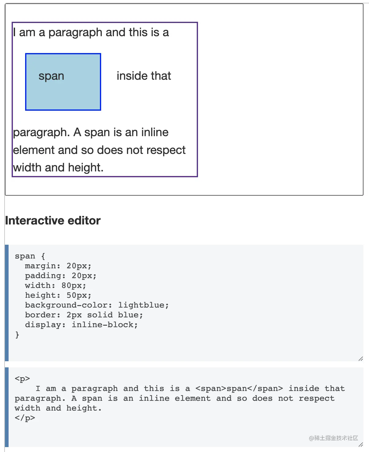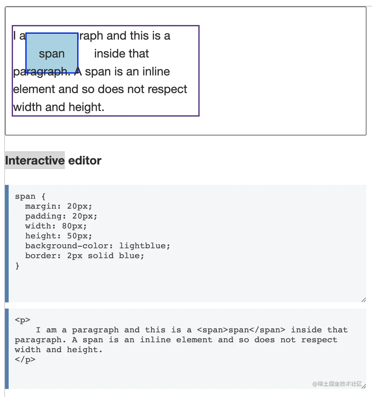 By default, a block level element's content fills the available inline space of the parent element containing it and grows along the block dimension to accommodate its content. The size of Inline elements is just the size of their content. You can't set width or height on inline elements — they just sit inside the content of block level elements. If you want to control the size of an inline element in this manner, you need to set it to behave like a block level element (e.g., with display: block; or display: inline-block;, which mixes characteristics from both).