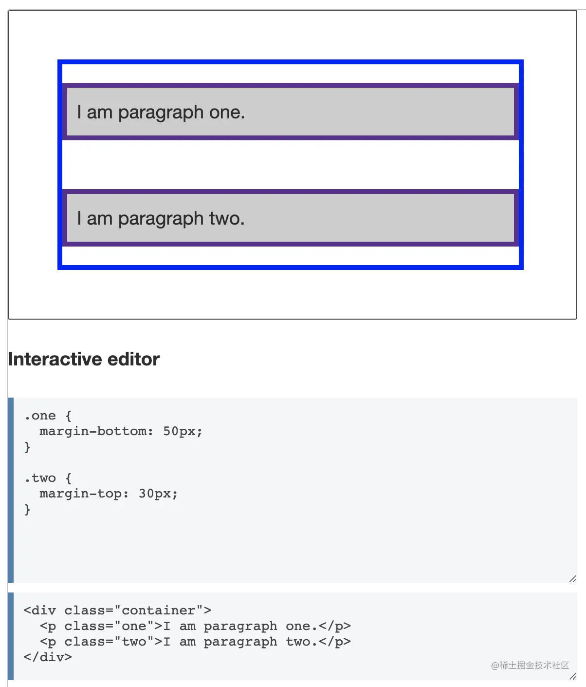 If two vertically adjacent elements both have a margin set on them and their margins touch, the larger of the two margins remains and the smaller one disappears. This is known as margin collapsing . Collapsing margins is only relevant in the vertical direction.
