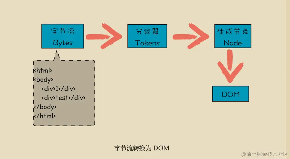 从网络传给渲染引擎的 HTML 文件字节流是无法直接被渲染引擎理解的,所以要将其转化为渲染引擎能够理解的内部结构,这个结构就是 DOM。DOM 提供了对 HTML 文档结构化的表述。