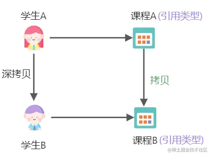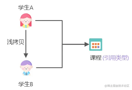 浅拷贝后,两个对象的地址不相等,但是对象内部的引用类型的地址是相等的,说明是两个独立的对象,内部引用类型是共享的。