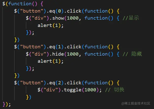 - 参数都可以省略,无动画直接显示。