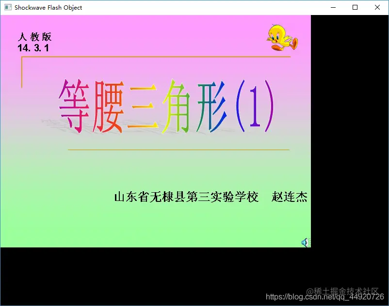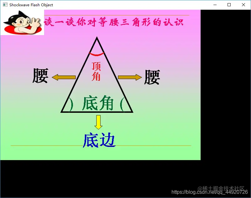 self.dynamicCall("LoadMovie(long,string)", 0, "D:\教育数据包\同步教学资源\初中\数学\八年级上册\等腰三角形.swf")