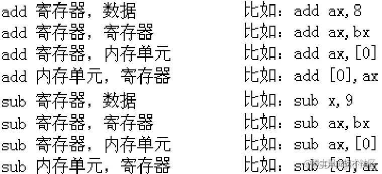 add 和 sub 指令同 mov 一样,都有两个操作对象。