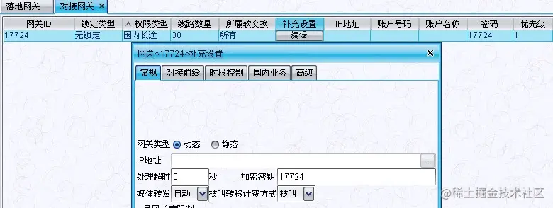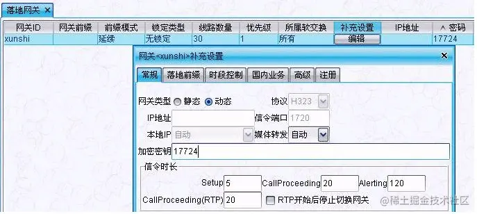 附:关于讯时O口网关注册VOS同时做对接和落地注:只有VOS2009-2.1.2.0及其以上版本支持。讯时网关的配置和注册对接网关一样。不同的是在VOS上同时新建一个对接网关和一个落地网关。网关ID,密码,加密密钥三者相同。如下图: