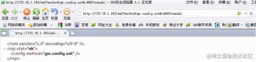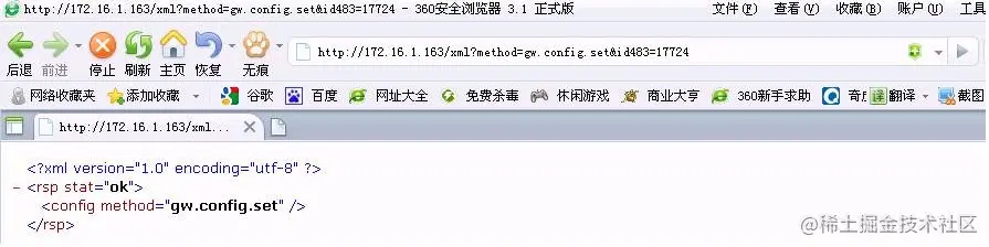 网关配置界面下在地址栏输入http://x.x.x.x/xml?