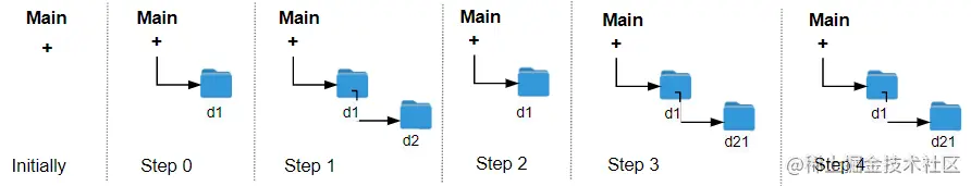 文件系统启动时位于主文件夹,然后执行 logs 中的操作。