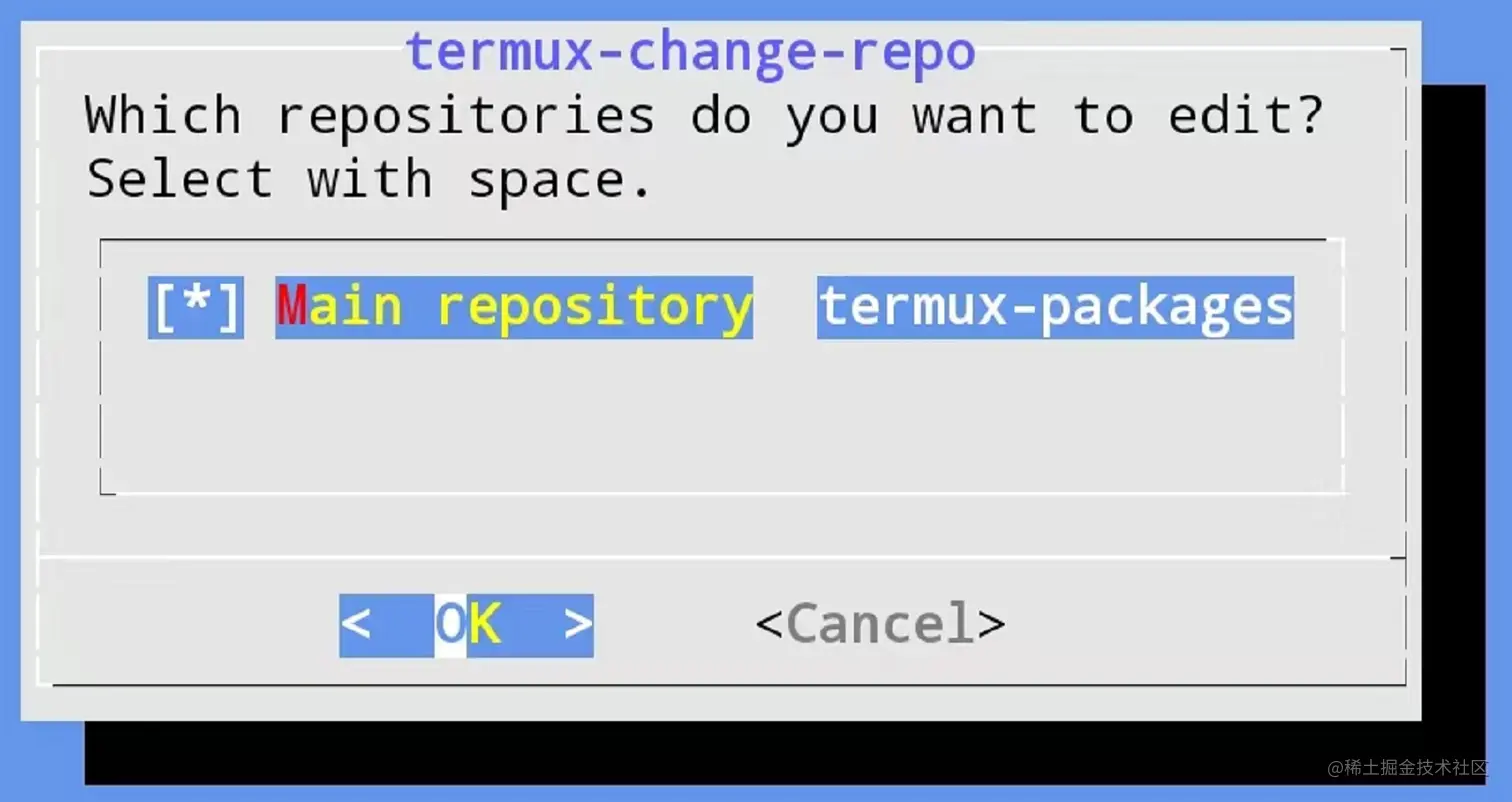~ $ termux-change-repo