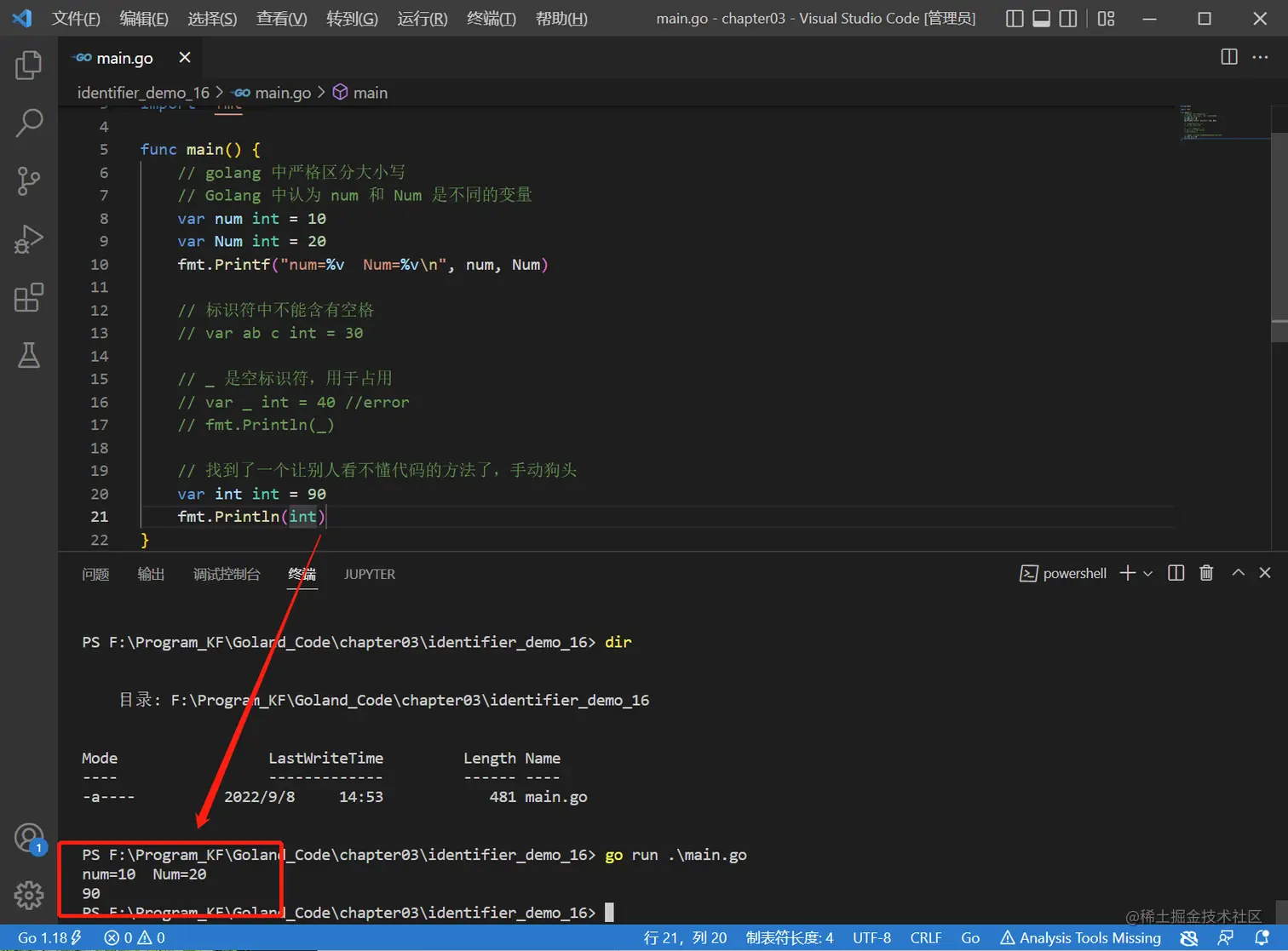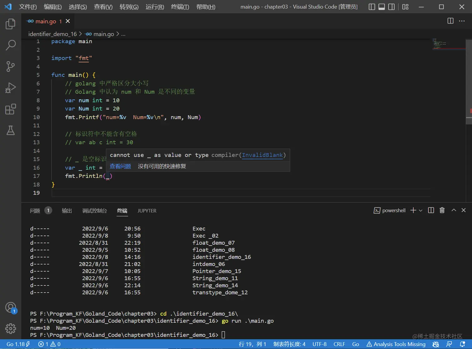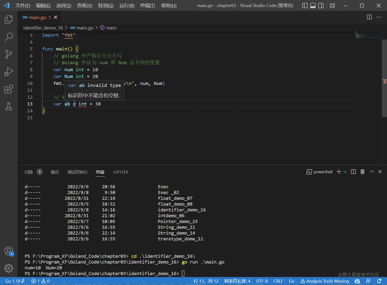 - Golang 中严格区分大小写
