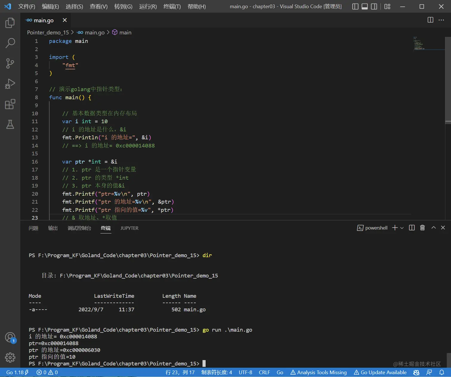 // 演示golang中指针类型: