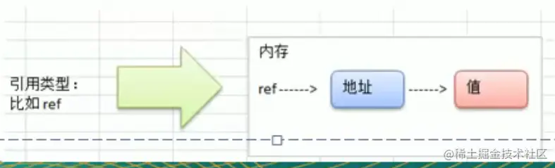 - 引用类型:变量存储的是一个地址,这个地址对应的空间才真正存储数据(值),内存通常在堆上分配,当没有任何变量引用这个地址时,该地址对应的数据空间就成为一个垃圾,由GC来回收。