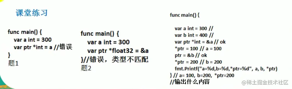 var ptr * int,使用*ptr获取ptr指向的值。