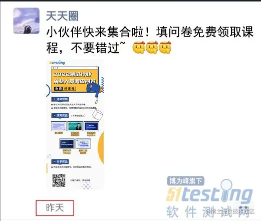 关于“公司测试人员的晋升情况”和“软件测试从业人员收入情况”,就先分享这些。如果你对测试人员的其他问题,例如“软件测试适不适合女孩子学习”、“做性能测试选择哪个工具最好”也感兴趣的话,欢迎参与本次51Testing推出的《2022软件测试调查问卷》活动。