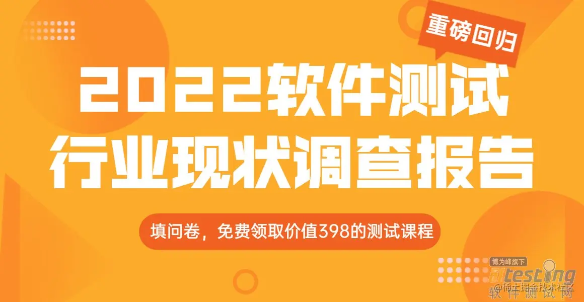 欢迎大家点击链接>>2022软件测试行业现状调查报告,或者扫描下方二维码参与本年度的行业调查问卷,你的每一个选择都能真实的反应出这个行业的发展方向,也会最直观的反映在调查报告中。