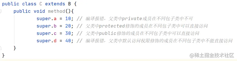c = 102; // 子类没有c,访问的肯定是从父类继承下来的c