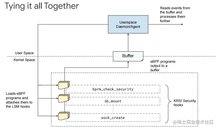 1)KRSI 允许适当的特权用户将 BPF 程序挂载到 LSM 子系统提供的数百个钩子中的任何一个上面。